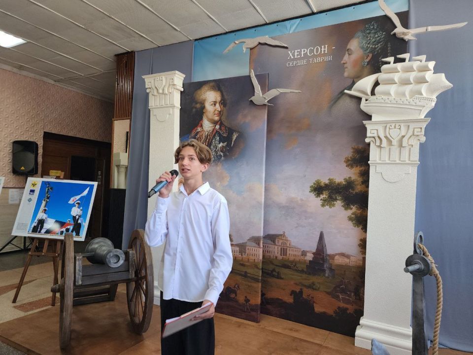 Фотовыставку продемонстрировал Семчук Егор, уроженец Херсонской области, ставший финалистом Конкурса детских культурных инициатив III Международного детского культурного форума 2024 в Москве.