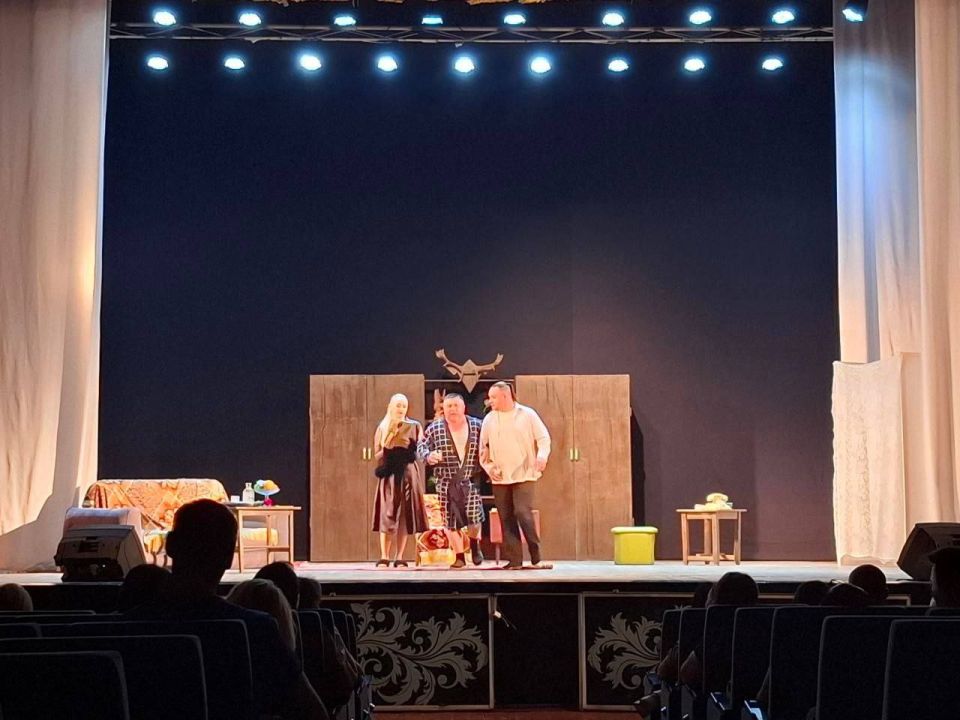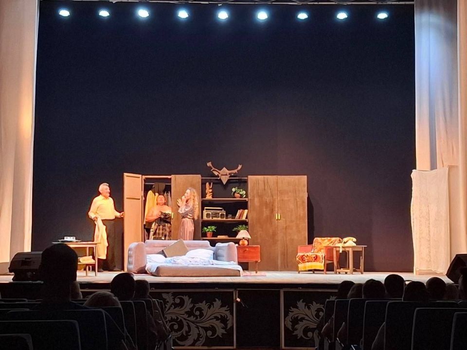 На сцене Дворца культуры города Приморска Запорожской области состоялась премьера спектакля-комедии "Соседям вход через балкон" по произведению Хенрика Бергера "Еще один Джексон или перебор".