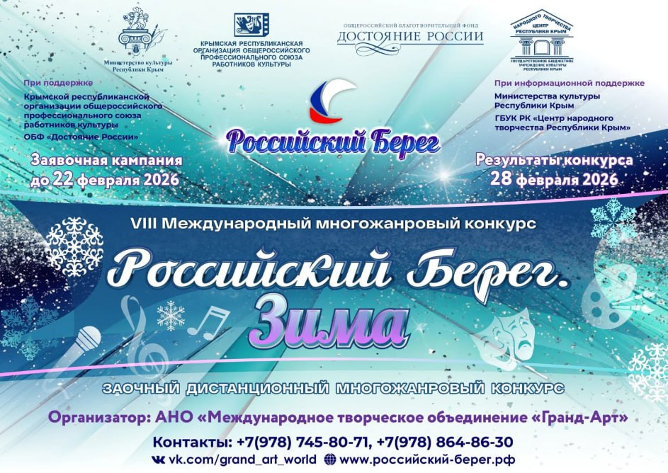 Подробная информация о конкурсе, положение, требования к работам на официальном сайте: www.российский-берег.рф