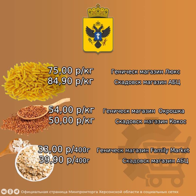 Для вашего удобства в сообществах Минпромторга Херсонской области еженедельно будут размещаться минимальные цены на различные наборы продуктов социального значения, которые можно приобрести в магазинах региона.