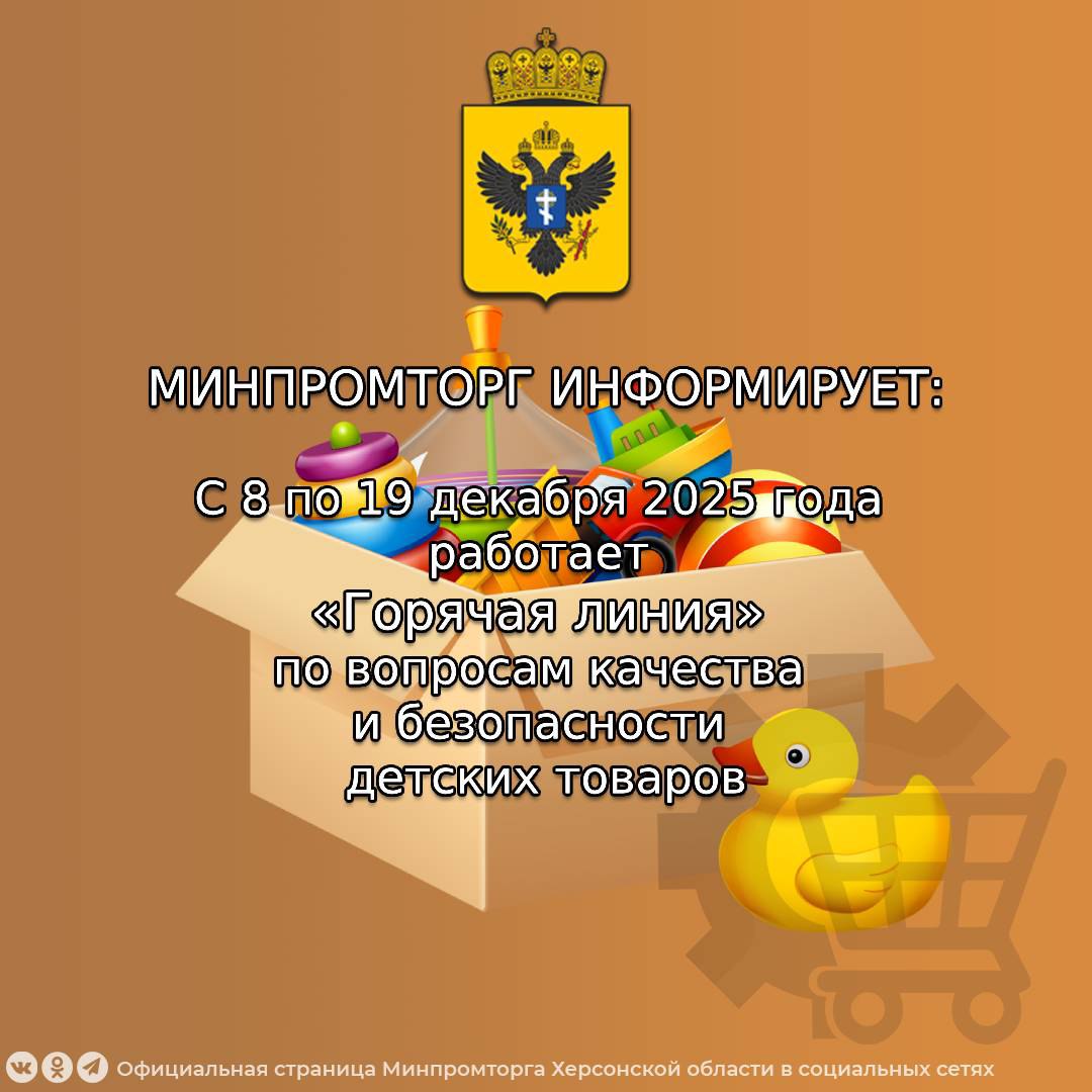 С 8 по 19 декабря 2025 года работает «Горячая линия» по вопросам качества и безопасности детских товаров, а также выбора новогодних подарков.