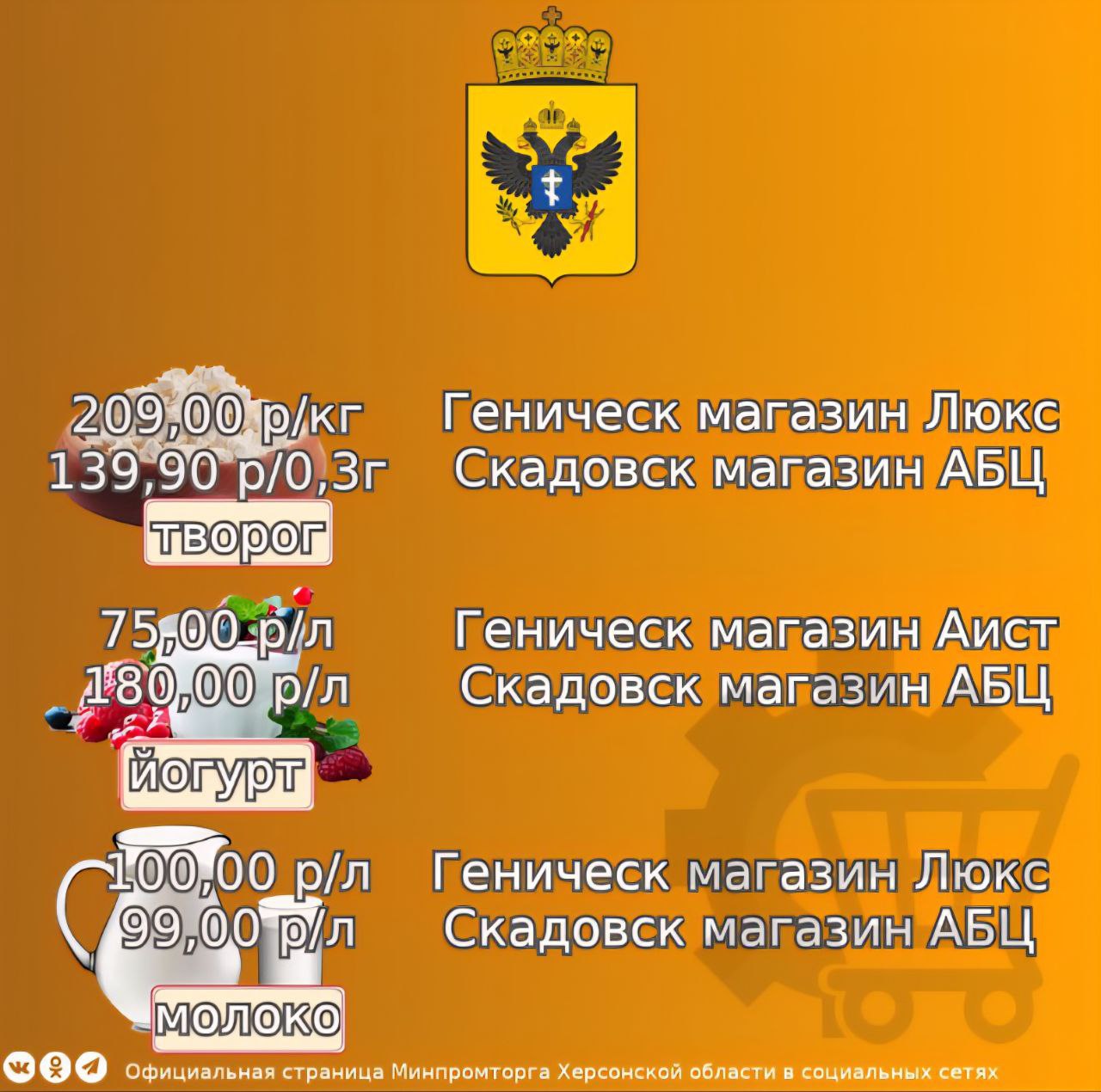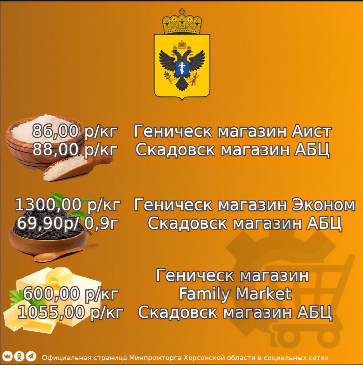 Для вашего удобства в сообществах Минпромторга Херсонской области еженедельно будут размещаться минимальные цены на различные наборы продуктов социального значения, которые можно приобрести в магазинах региона.