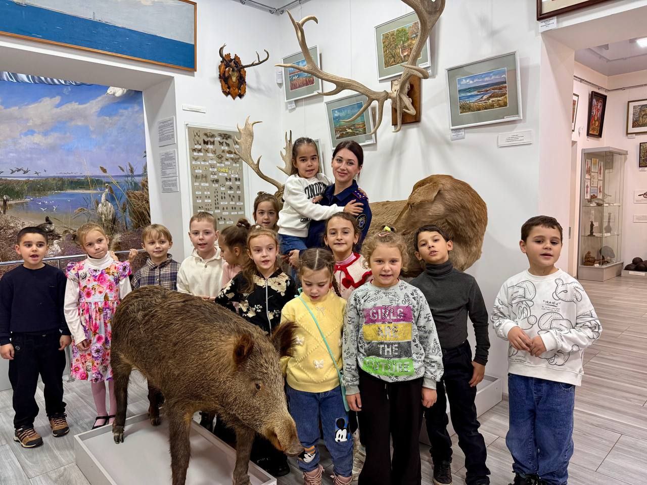 Увлекательная экскурсия началась с Информационного зала, в котором собрана коллекция картин с изображениями достопримечательностей города, а авторами являются местные художники. Далее, пройдя в зал Природы, ребята окунулись в красоту диорамы острова Бирючий, озера Сиваш, Азовского моря и прикоснулись к флоре и фауне родного края.