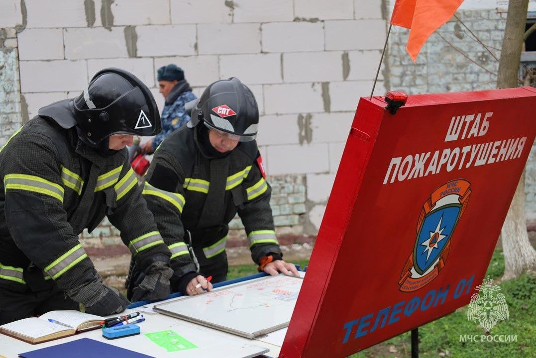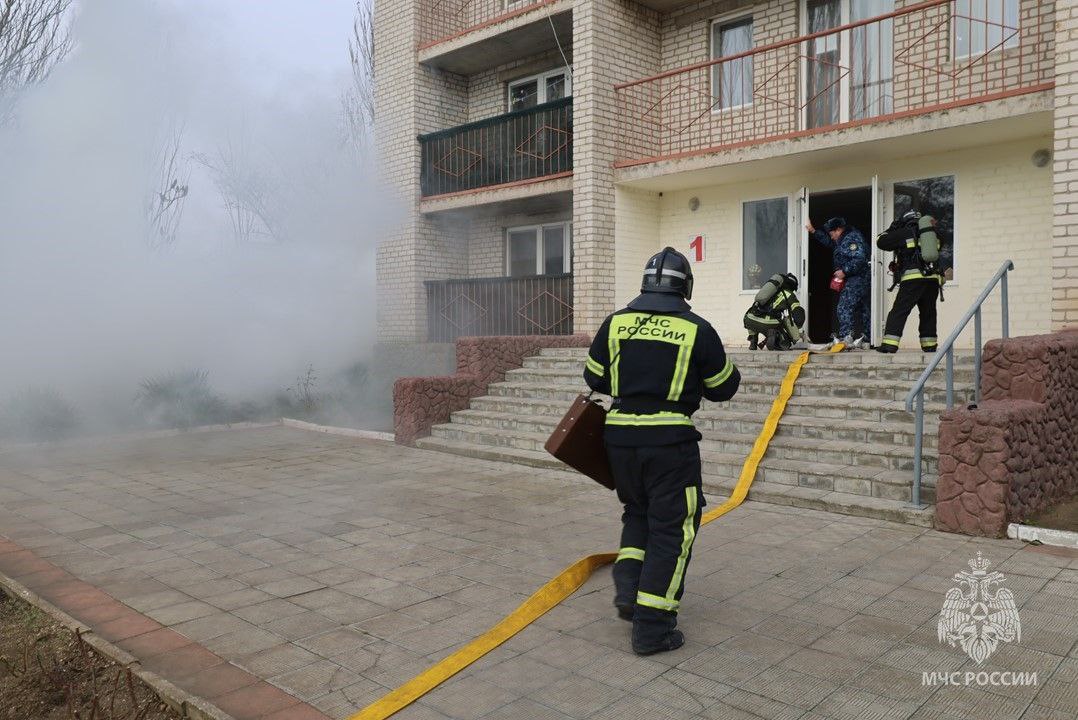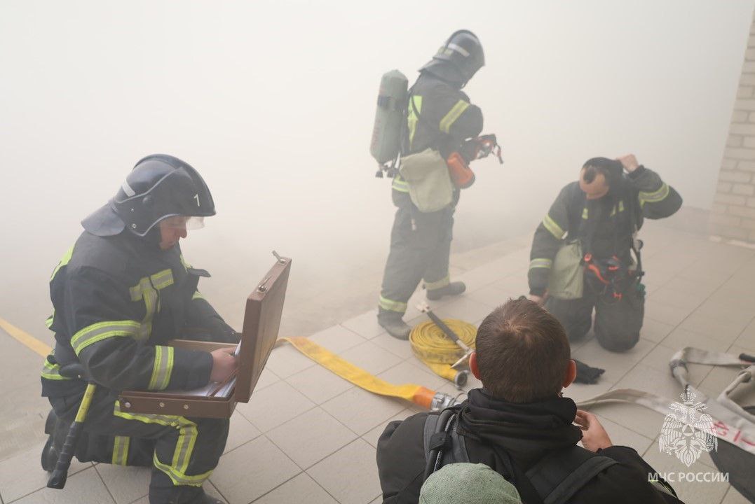 По легенде учений на третьем этаже здания произошло возгорание. Прибывшие на место происшествия сотрудники чрезвычайного ведомства эвакуировали находившихся в здании людей. Очаг возгорания был обнаружен и локализован.