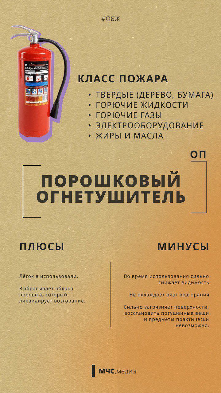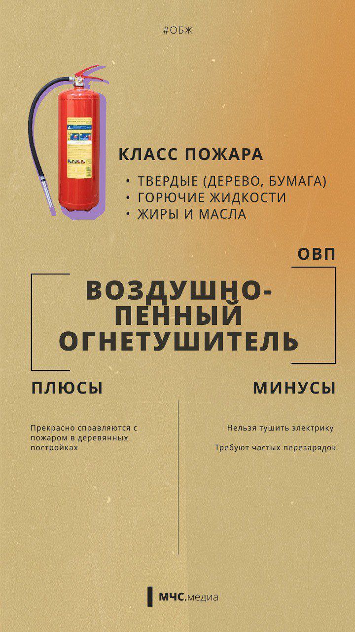 МЧС России напоминает о различных видах огнетушителей: