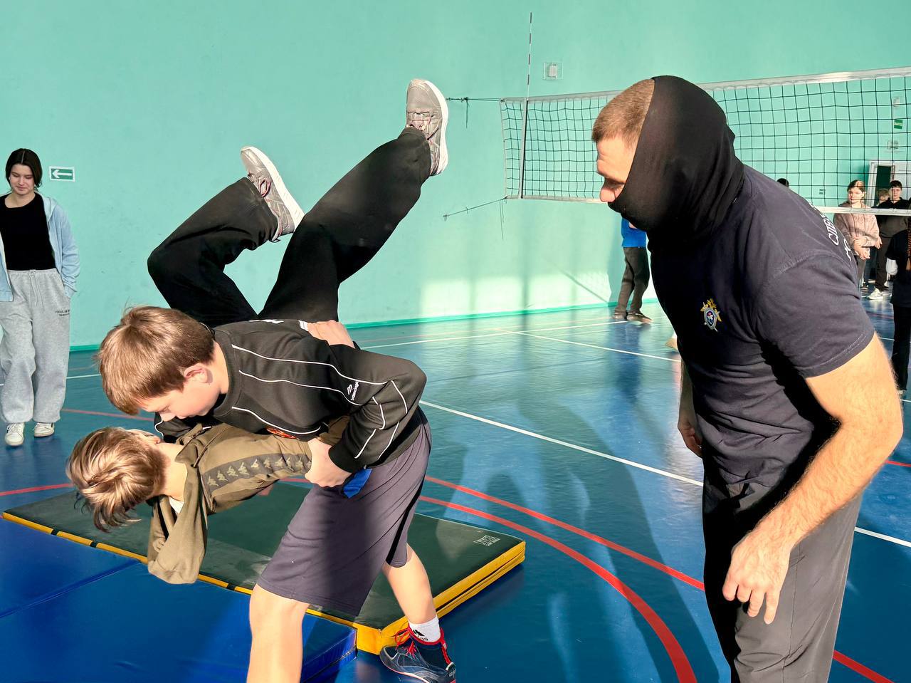 В спортивном зале ГБОУ ХО «Геническая школа № 3 Генического муниципального округа» состоялся урок по самообороне для учеников ведомственных кадетских классов, которые совсем недавно вступили в ряды молодых кадет. Физическое и патриотическое воспитание молодежи сегодня занимает особое место в общеобразовательном процессе, сотрудники СК России уделяют повышенное внимание подрастающему поколению, стараясь в полной мере передать свои знания и навыки для их достойного воспитания.