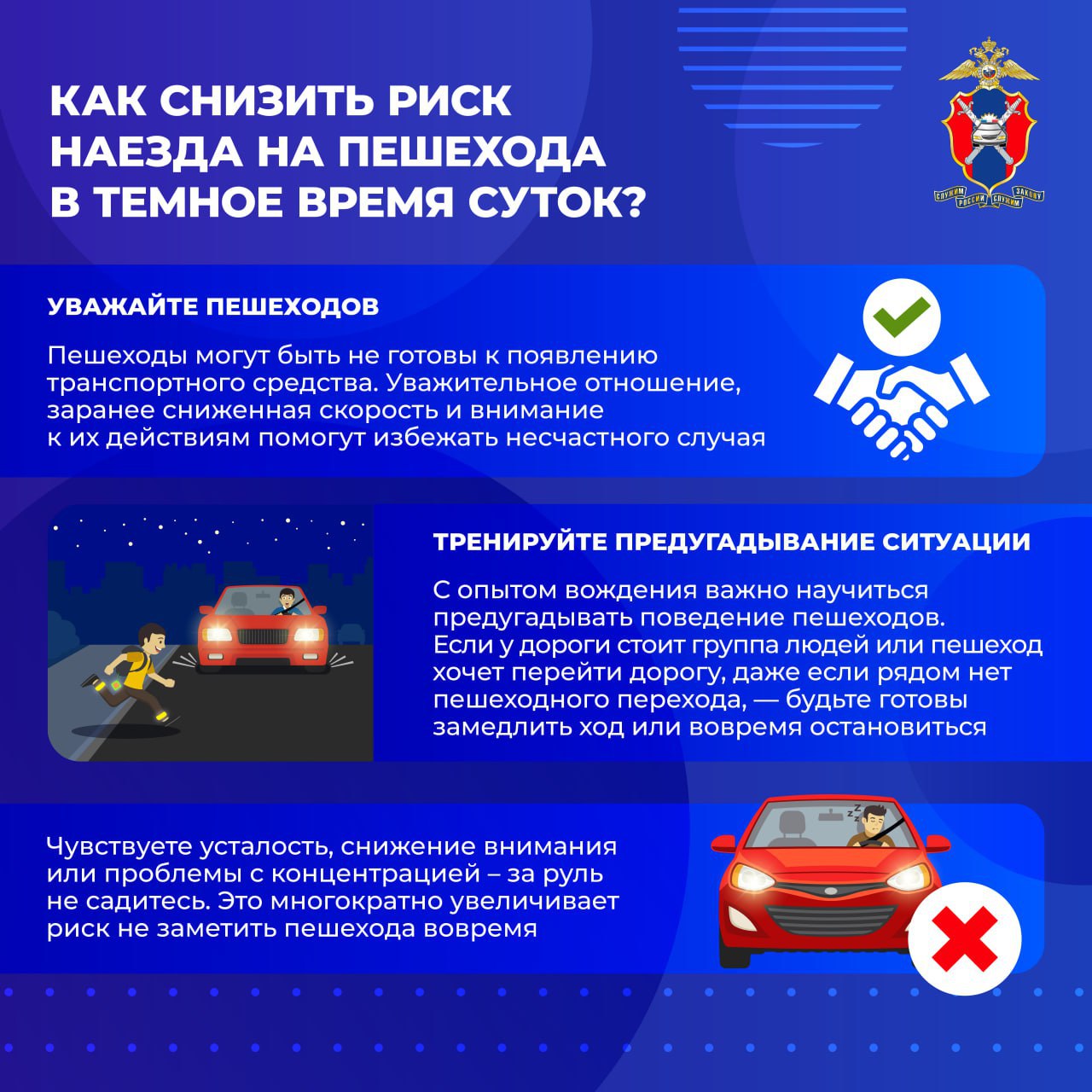 Сегодня в наших карточках рассмотрим, как снизить риск наезда на пешехода в темное время суток, - что нужно знать и на что обратить внимание.