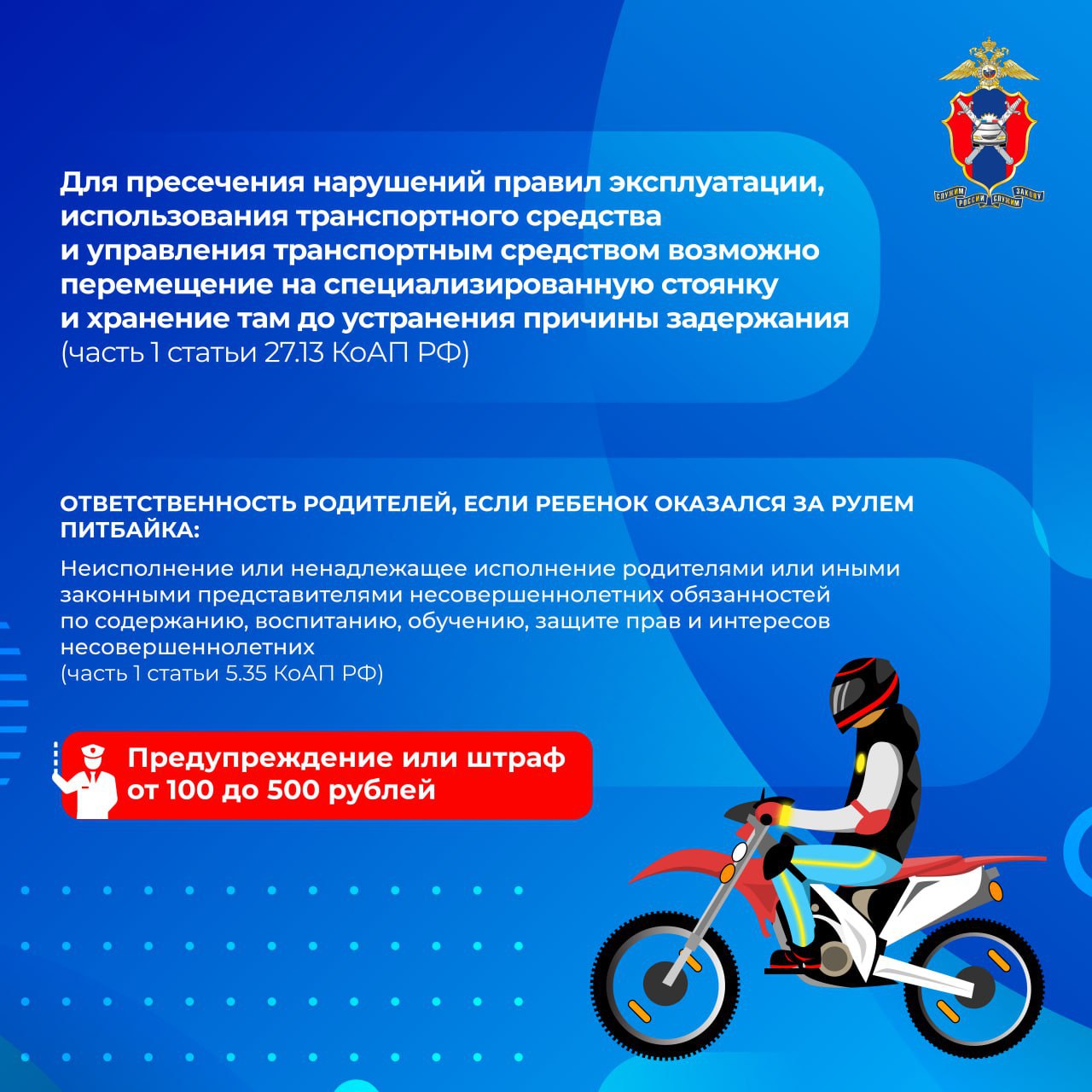 Помните: выезжая на питбайке на дорогу общего пользования, вы не только нарушаете закон, но и создаете прямую угрозу для себя и других участников движения!