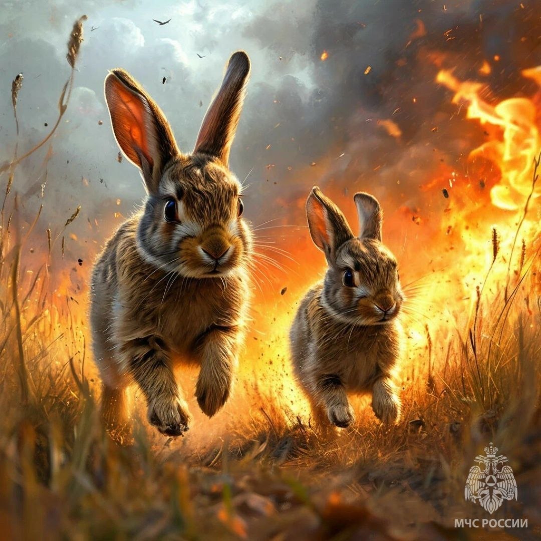 При травяном пожаре гибнут многие животные, обитающие в сухой траве или на поверхности почвы — кто-то сгорает, кто-то задыхается в дыму. В огне гибнут птицы и птичьи гнезда, мелкие млекопитающие, беспозвоночные и микроорганизмы... А ведь весной у них начинает появляться потомство, и где-то за листвой могут сидеть новорожденные зайчата и птенцы.