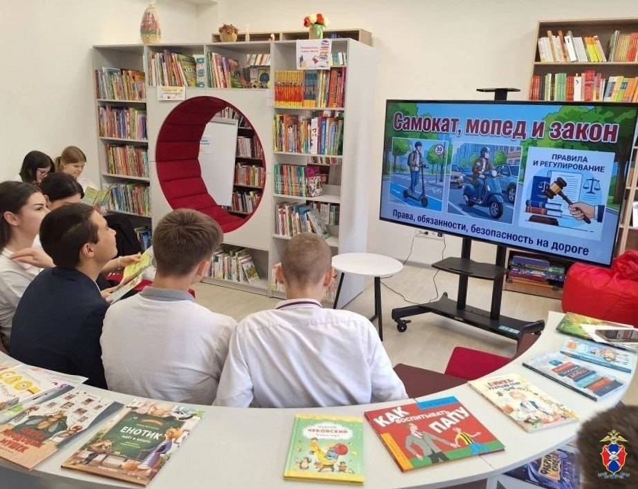 Сотрудники отделения МВД России «Чаплынское» провели тематическое мероприятие в Чаплынской районной библиотеке по профилактике детского дорожно-транспортного травматизма через формирование у несовершеннолетних навыков безопасного поведения на дороге и ответственного отношения к управлению средствами индивидуальной мобильности (СИМ), включая мопеды, скутеры и мотоциклы.