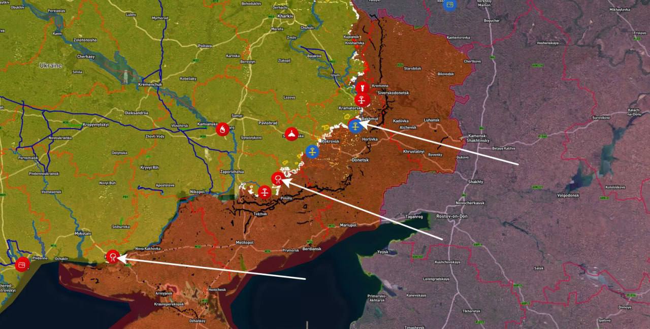 На кадрах поражение по порядку:- ПВД 210 ошп ВСУ ФАБами-500 в н.п. Воздвижевка. - ПВД 100 омбр ВСУ ФАБом-1500 в Константиновке. - ПВД 34 обрмп ВСУ ФАБами-500 в Херсоне.
