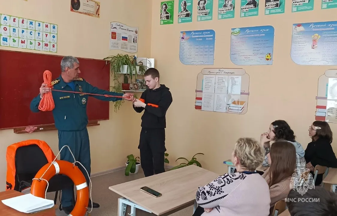 На встречах с учениками сотрудники Государственной инспекции по маломерным судам МЧС России рассказывают о самых распространенных опасностях, которые могут подстерегать людей на воде.