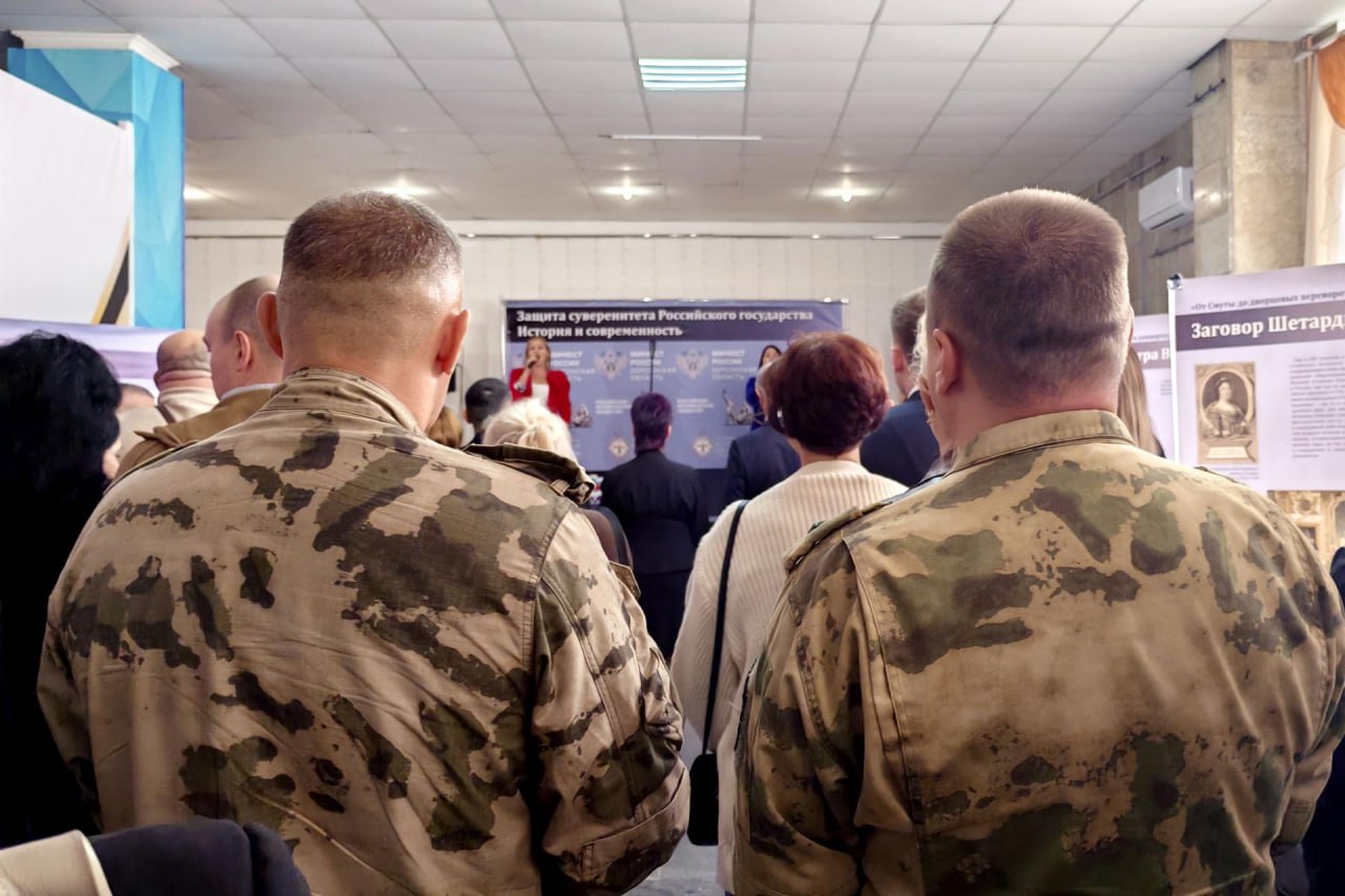 В преддверии Дня воссоединения с Россией Донецкой и Луганской Народных республик, Запорожской и Херсонской областей в Доме культуры города Геническа состоялось открытие выставки «Защита суверенитета Российского государства. История и современность».