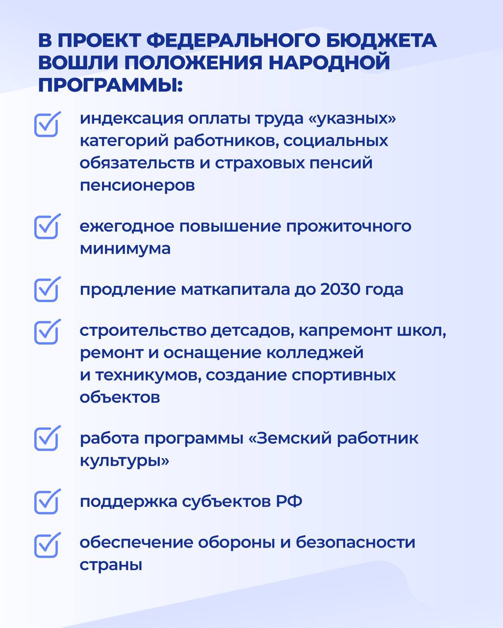 В бюджете будут предусмотрены средства на работы по народной программе партии.