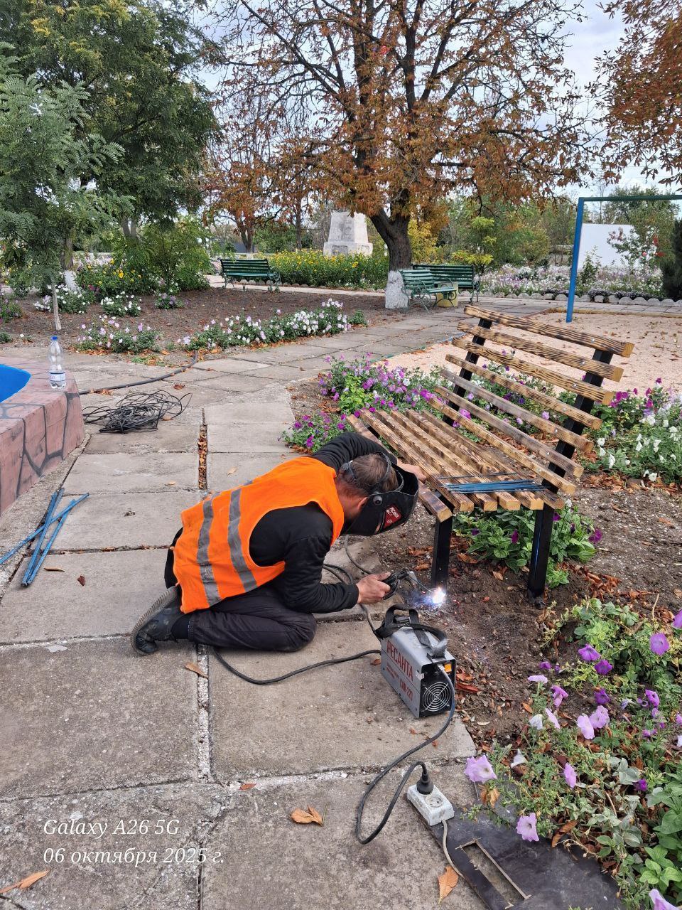 Новые лавочки и будущее освещение: в Петровке благоустраивают зону отдыха у фонтана