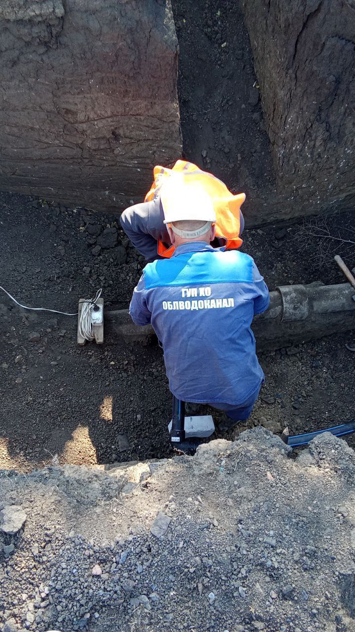 Бригада аварийно-восстановительных работ в составе шести человек оперативно ликвидировала порыв на отводе от центральной магистрали абонента в Новоалександровке, используя резиновый бандаж для устранения повреждения.