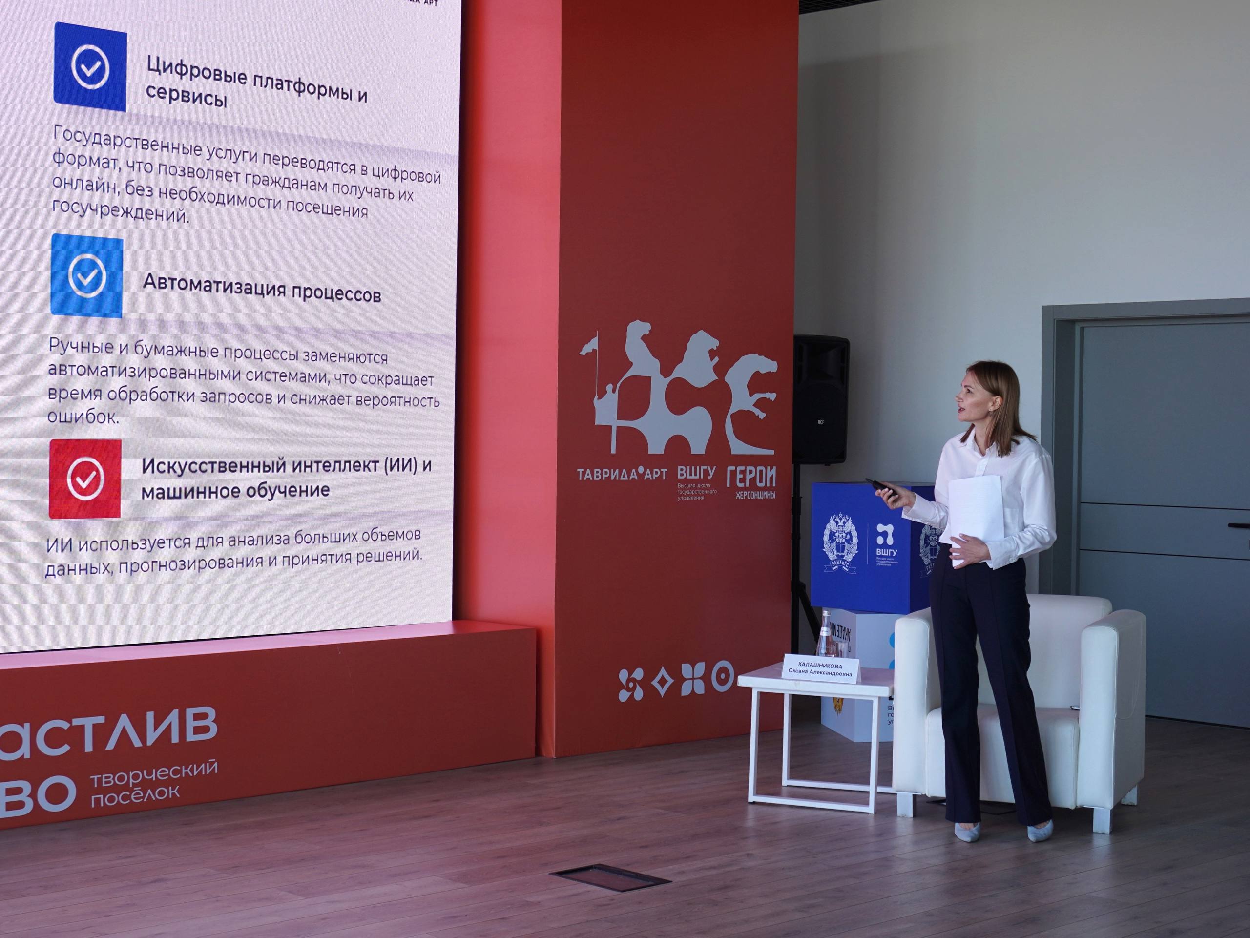 На первомобразовательном модуле проекта «Герои Херсонщины» специальную лекцию, посвященную ключевым компетенциям современного руководителя, для финалистов провела начальник Управления внутренней политики региона Оксана Калашникова.