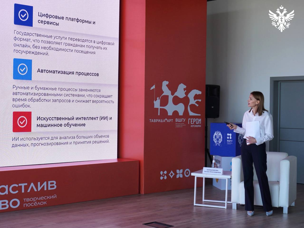 На первомобразовательном модуле проекта «Герои Херсонщины» специальную лекцию, посвященную ключевым компетенциям современного руководителя, для финалистов провела начальник Управления внутренней политики региона Оксана Калашникова.