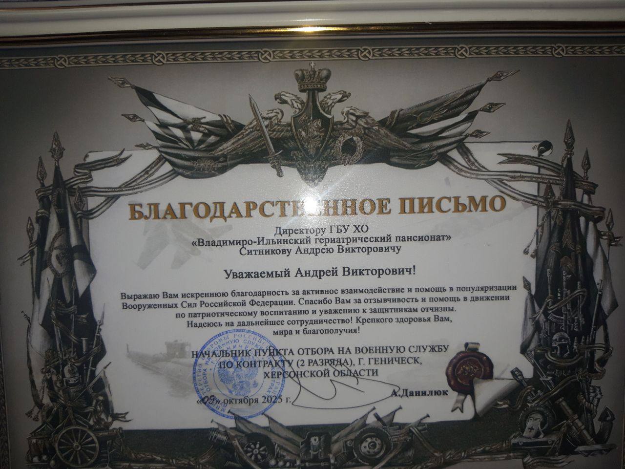 9 октября в Новотроицком муниципальном округе Херсонской области состоялось важное событие. В гериатрическом пансионате «Владимиро-Ильинский» прошла встреча, которая запомнится надолго.