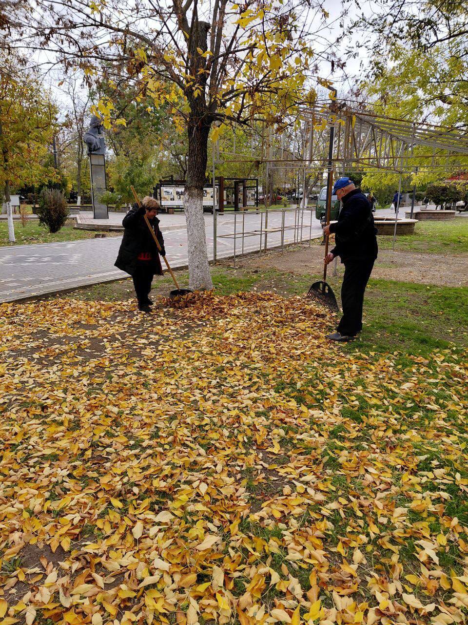 Комплексная уборка в городском парке (туалеты, мусор, опавшая листва), покос травы и ремонт лавочек.