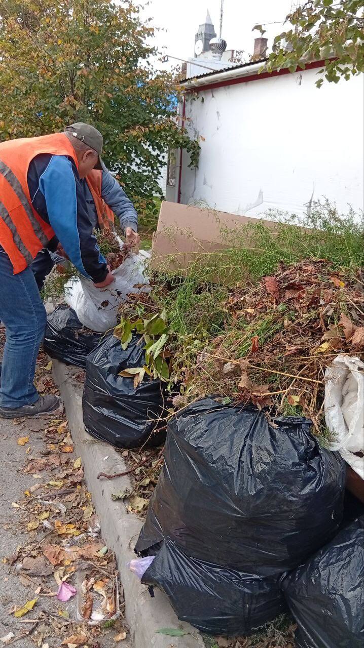 Уборка травы и опавшей листвы на ул. Петровского.