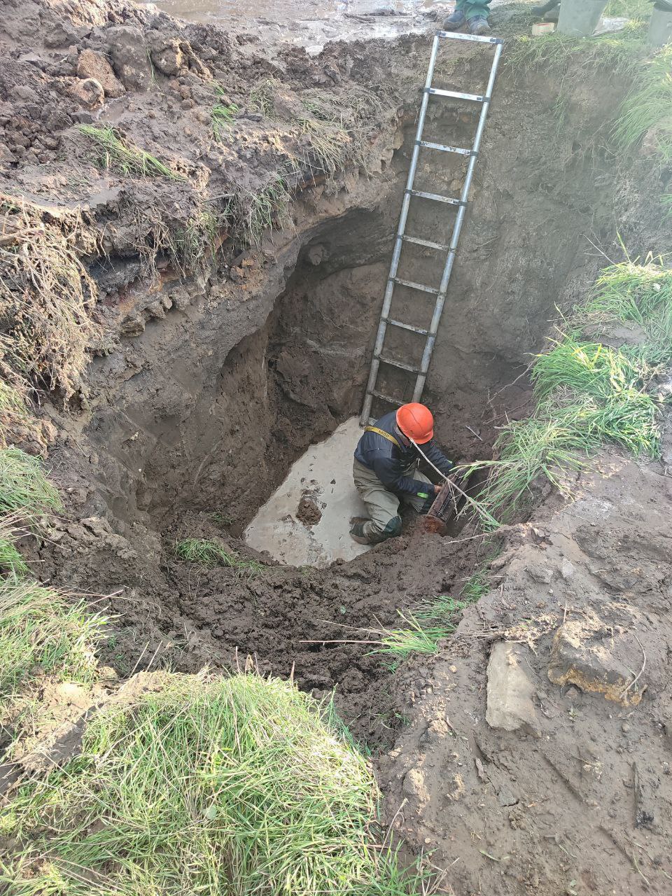 В пгт Горностаевка была устранена утечка на центральной линии магистрали водоснабжения. В процессе подготовительных работ проводилась раскопка траншеи и откачка воды с использованием мотопомпы. После, с помощью сварочных работ была изготовлена и установлена глухая седелка на трубопровод.
