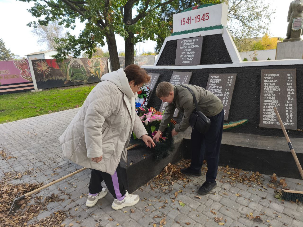 Сотрудники ГУП ХО "ОБЛВОДОКАНАЛ" высадили саженцы на территории памятника воинам Великой отечественной войны в пгт Новоалексеевка