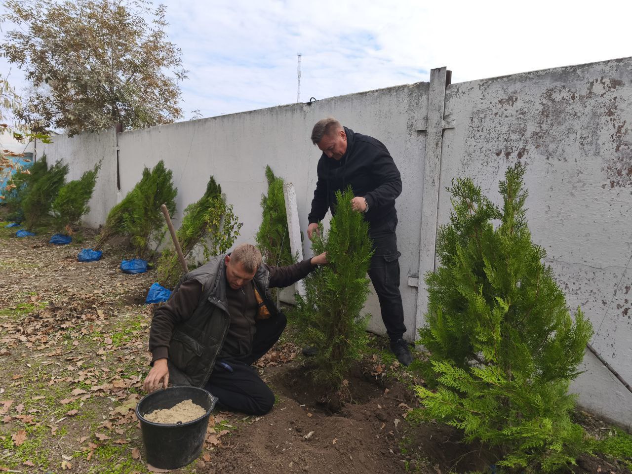 Сегодня, силами сотрудников Администрации предприятия и Генического филиала на территории мемориала и памятника «Воинам 263-й стрелковой дивизии, 4-гоУкраинского фронта, погибшим в боях за освобождение села Новоалексеевка 30 октября 1943 года» было высажено 21 дерево туи сорта "Биота восточная" и две сакуры сорта "Луизиана".