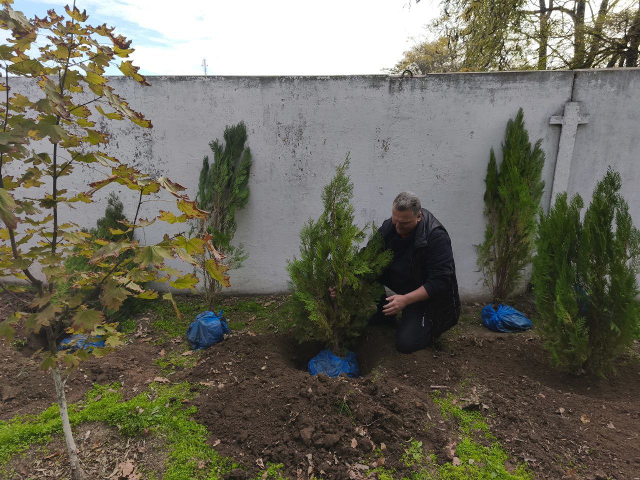 Игорь Носков также выразил благодарность всем, кто принял активное участие в покупке и высадке растений: сотрудникам администрации и Генического филиала, а также питомнику "Декоративные растения в вашем саду", который поставил саженцы туи, и в качестве подарка - две сакуры.