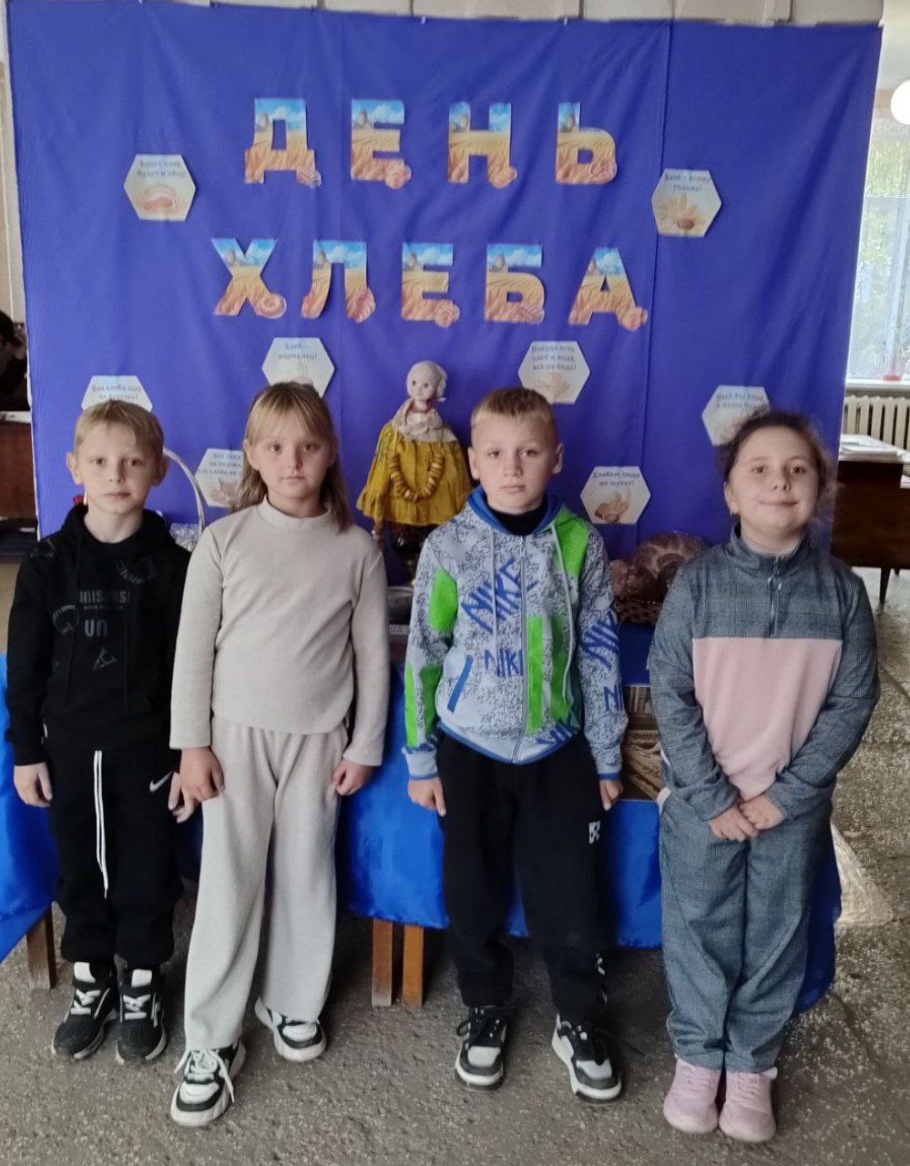 В фойе школы библиотекарь красиво и содержательно оформила книжную выставку «Хлеб — всему голова», которая познакомила учащихся с историей и значением хлеба.