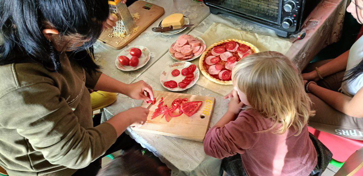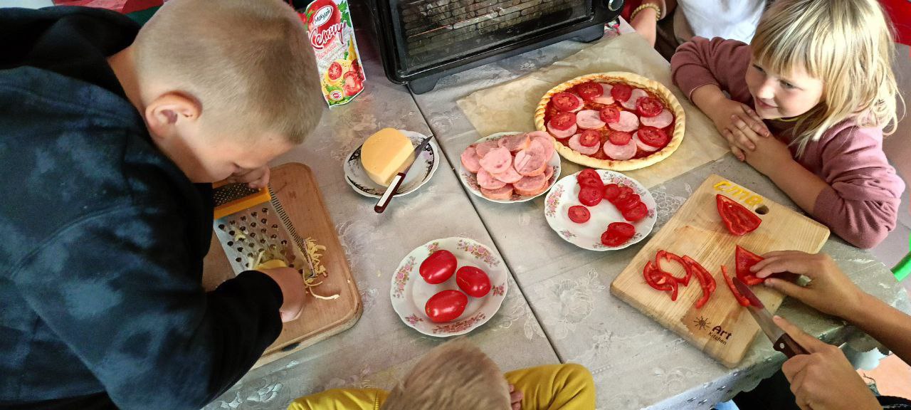 Дети с нетерпением ждали это первое кулинарное мероприятие в стенах библиотеки. Вместе с работниками культуры они приготовили вкусную и всеми любимую пиццу с колбасой, помидорами, перцем и сыром. Все участники активно принимали участие: нарезали продукты, выкладывали их на тесто, помогали друг другу и запекали пиццу в духовке.