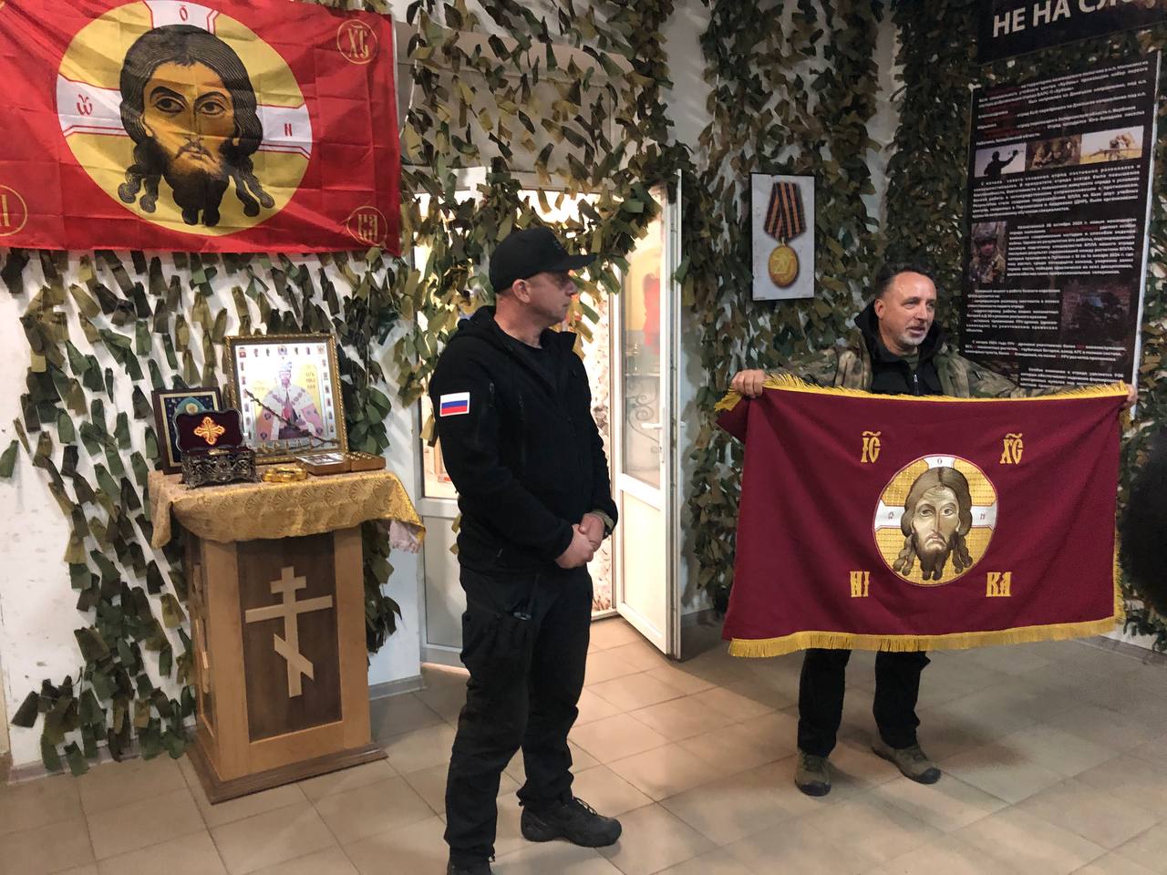 Он был вручную вышит золотошвеями Сергиево-Посадской Лавры и освящен на мощах преподобного Сергия Радонежского. Эти же мастерицы изготовили боевые знамена казачьей разведывательно-штурмовой бригады «Сибирь» и казачьей разведывательной бригады «Терек», которое позже подписал Верховный главнокомандующий, Президент Российской Федерации Владимир Путин.