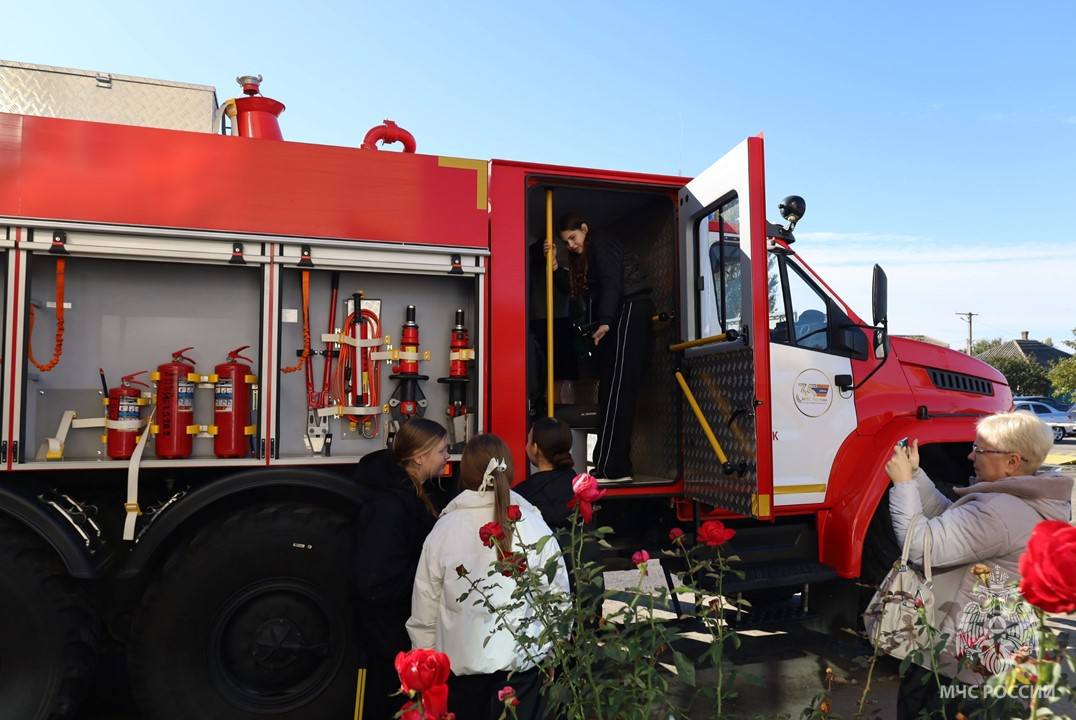 Ребята познакомились с пожарным автомобилем, современным оборудованием и узнали, как правильно вести себя в экстренных ситуациях. Они также увидели "Куб жизни" — средство эвакуации, которое можно использовать в плотной застройке.