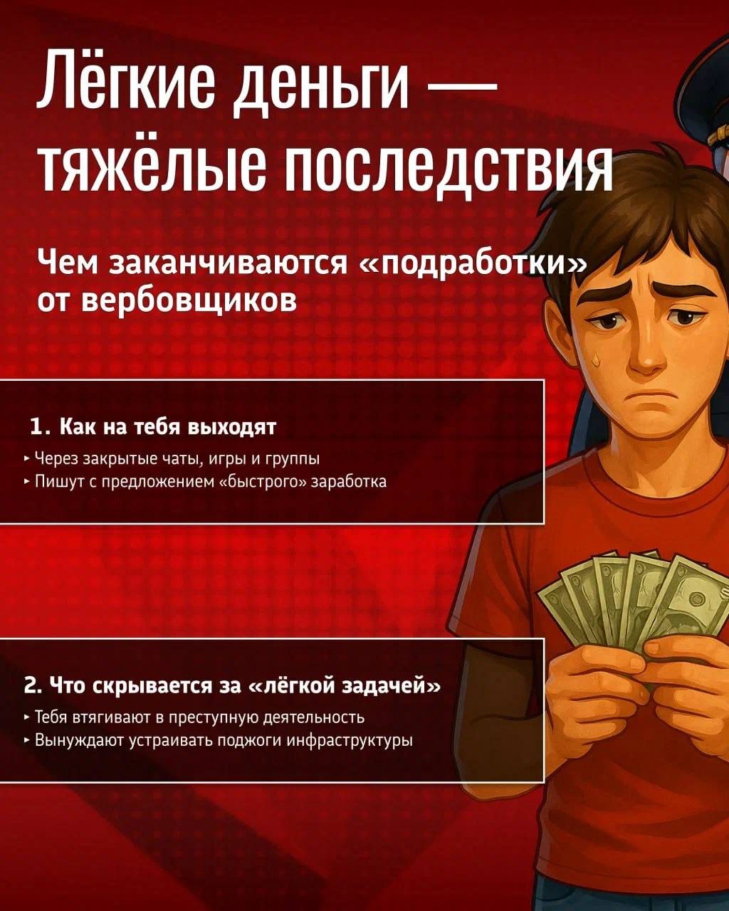 Но за фразой «просто передай пакет», «размести объявление» или «посиди с чемоданом» почти всегда скрывается что-то незаконное. Мошенники и вербовщики специально ищут тех, кто не хочет ждать и ищет быстрых путей.