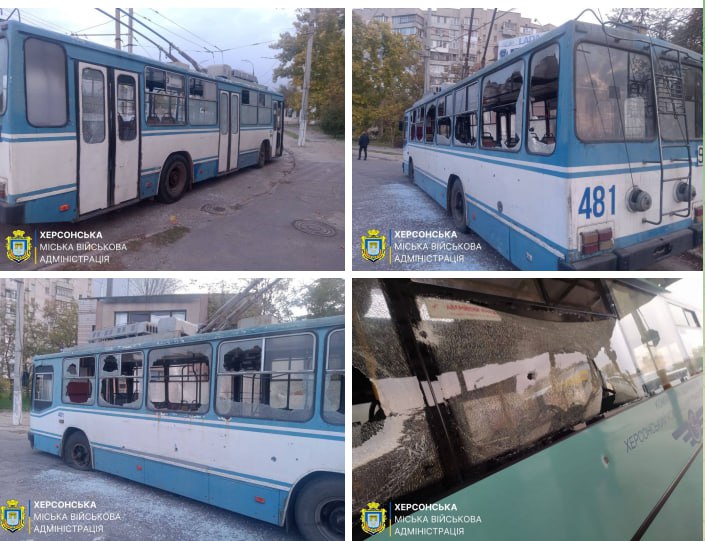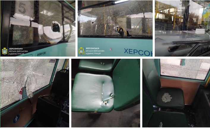 Утром во обстрел в Корабельном районе попал общественный транспорт. Поврежден троллейбус и маршрутный автобус. Ранение получила водитель КП "Херсонэлектротранс".