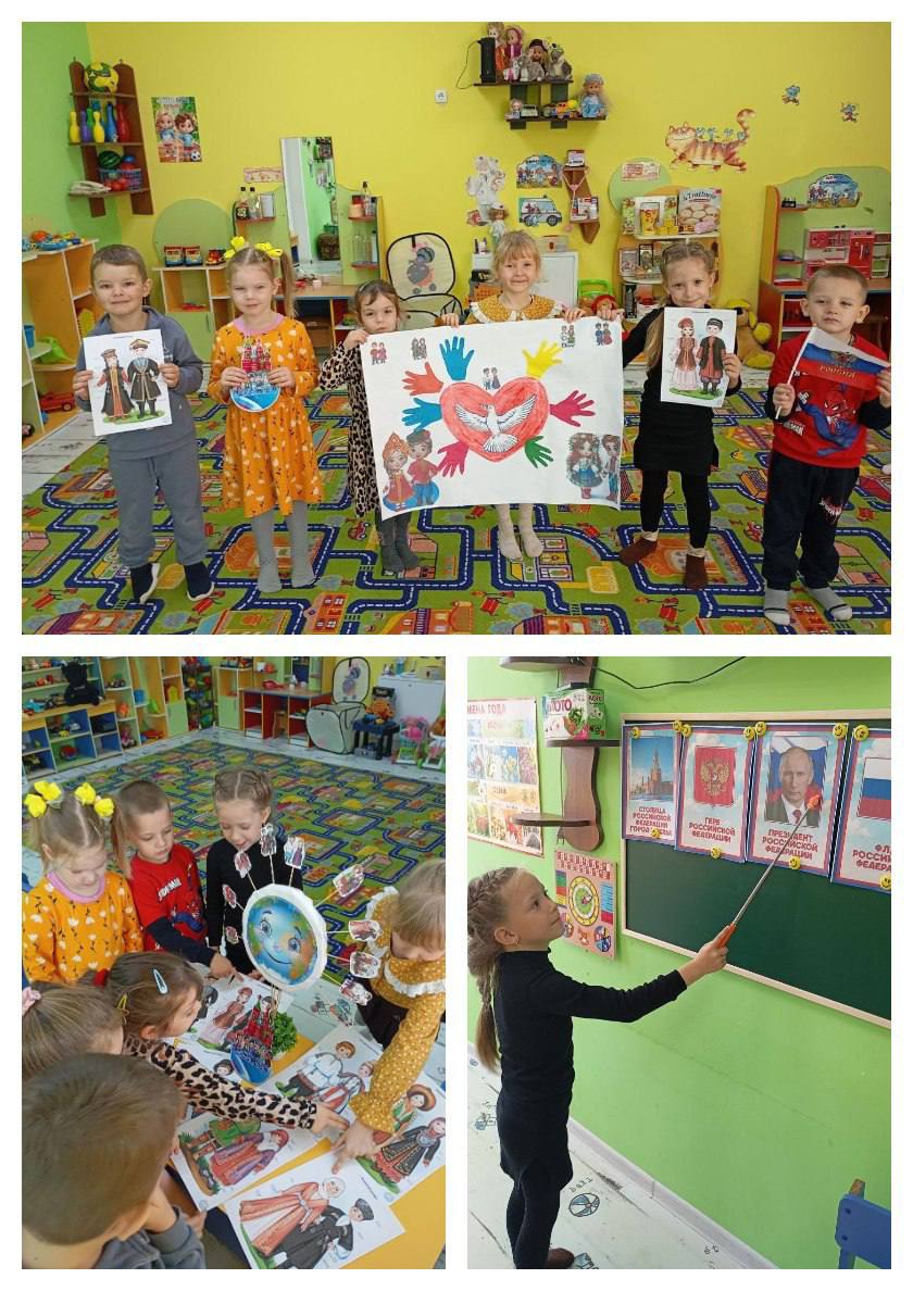 Во всех группах прошли тематические занятия, направленные на формирование у детей чувства патриотизма, гордости за свою страну и уважения к ее истории и культуре. Мы стремимся воспитать у подрастающего поколения толерантное отношение ко всем народам, населяющим нашу великую Родину.