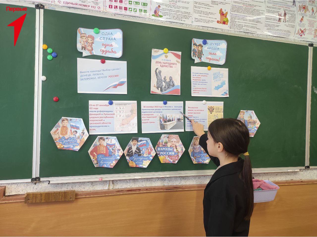 В преддверии Дня народного единства для учащихся 1–11 классов Новотроицкой школы № 2 прошел урок «Мы силой единой сильны». Школьники познакомились с историей возникновения праздника и узнали о культурном наследии России.