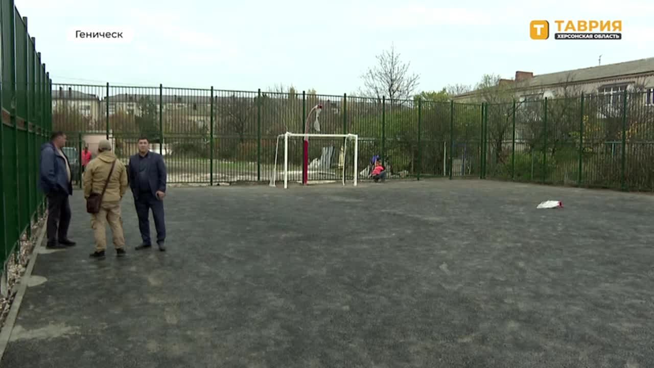 В Геническе завершается капитальный ремонт спортивной площадки открытого типа