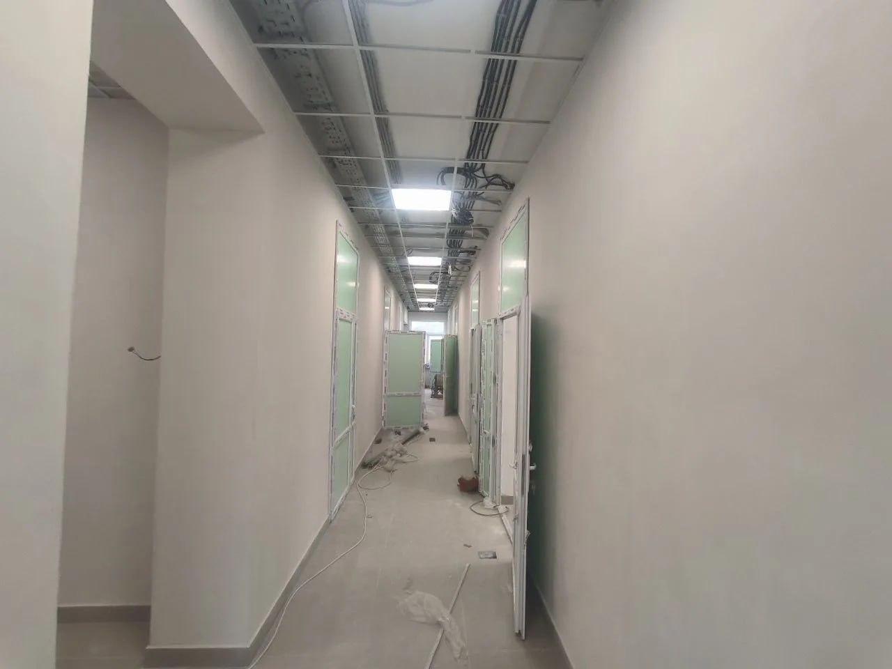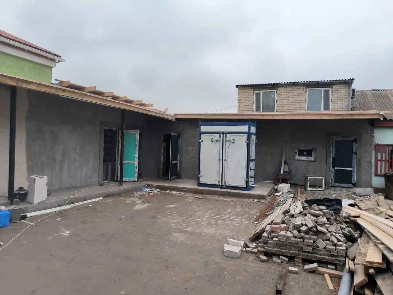 Специалисты уже установили модульную газовую котельную, также активно выполняются внутренние работы: на первом этаже завершена предчистовая отделка и подготовка стен под окраску, а на втором — специалисты зачищают второй слой шпатлёвки, готовя поверхности к финальной отделке. Снаружи здания уже обновлён фасад цоколя, а на входной группе идёт укладка керамической плитки на ступенях. Параллельно продолжаются штукатурные работы в пристройке.