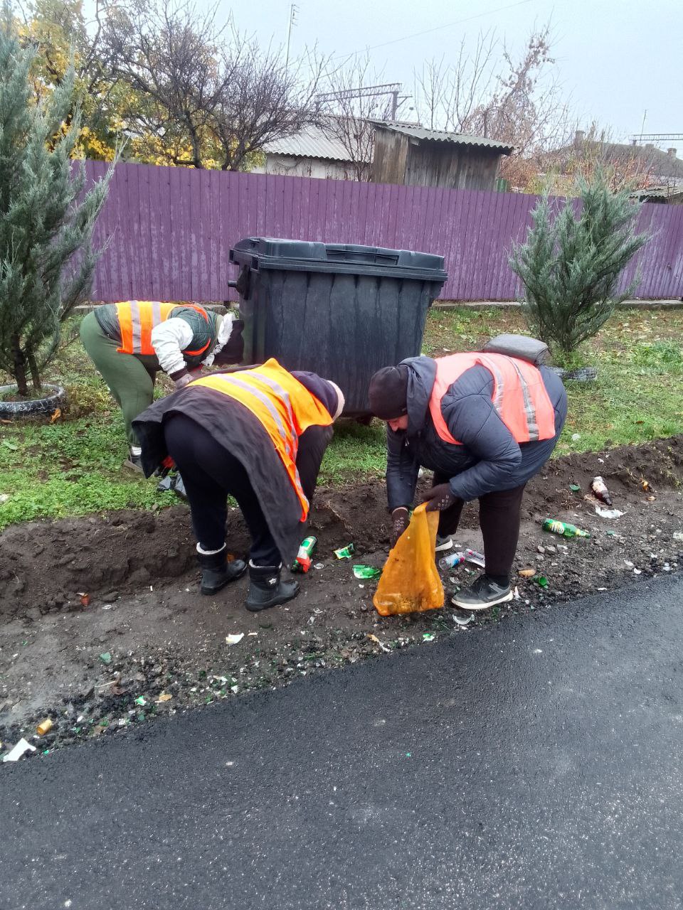 Стрелковое – уборка листвы на территории рынка, санитарная чистка урн на детской площадке и ул. Центральной.
