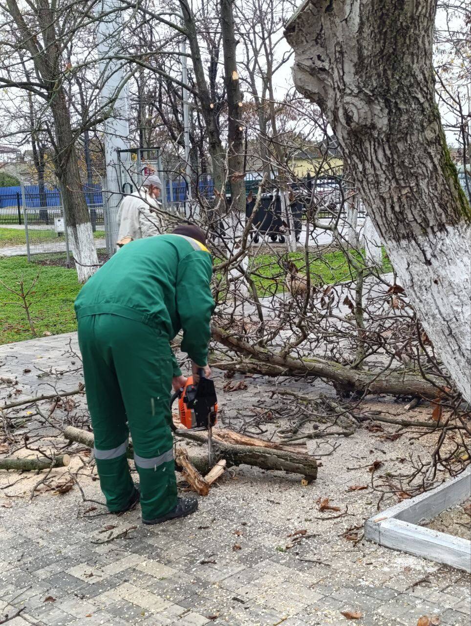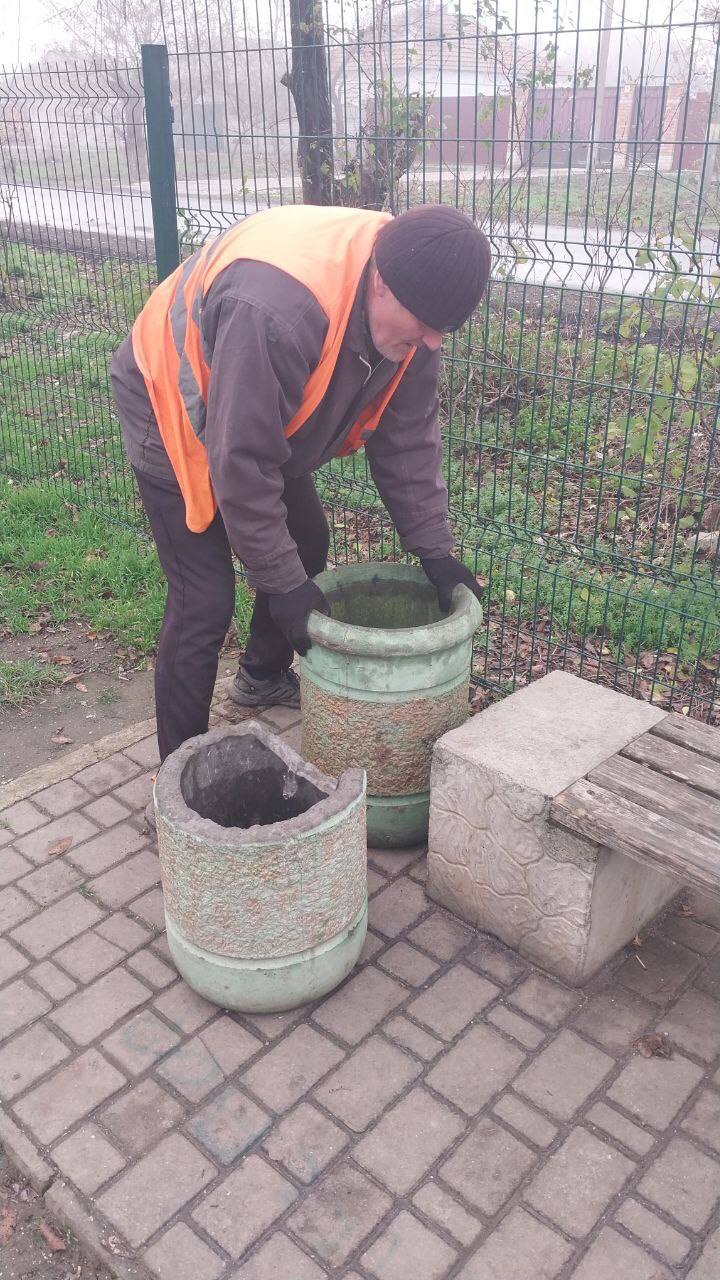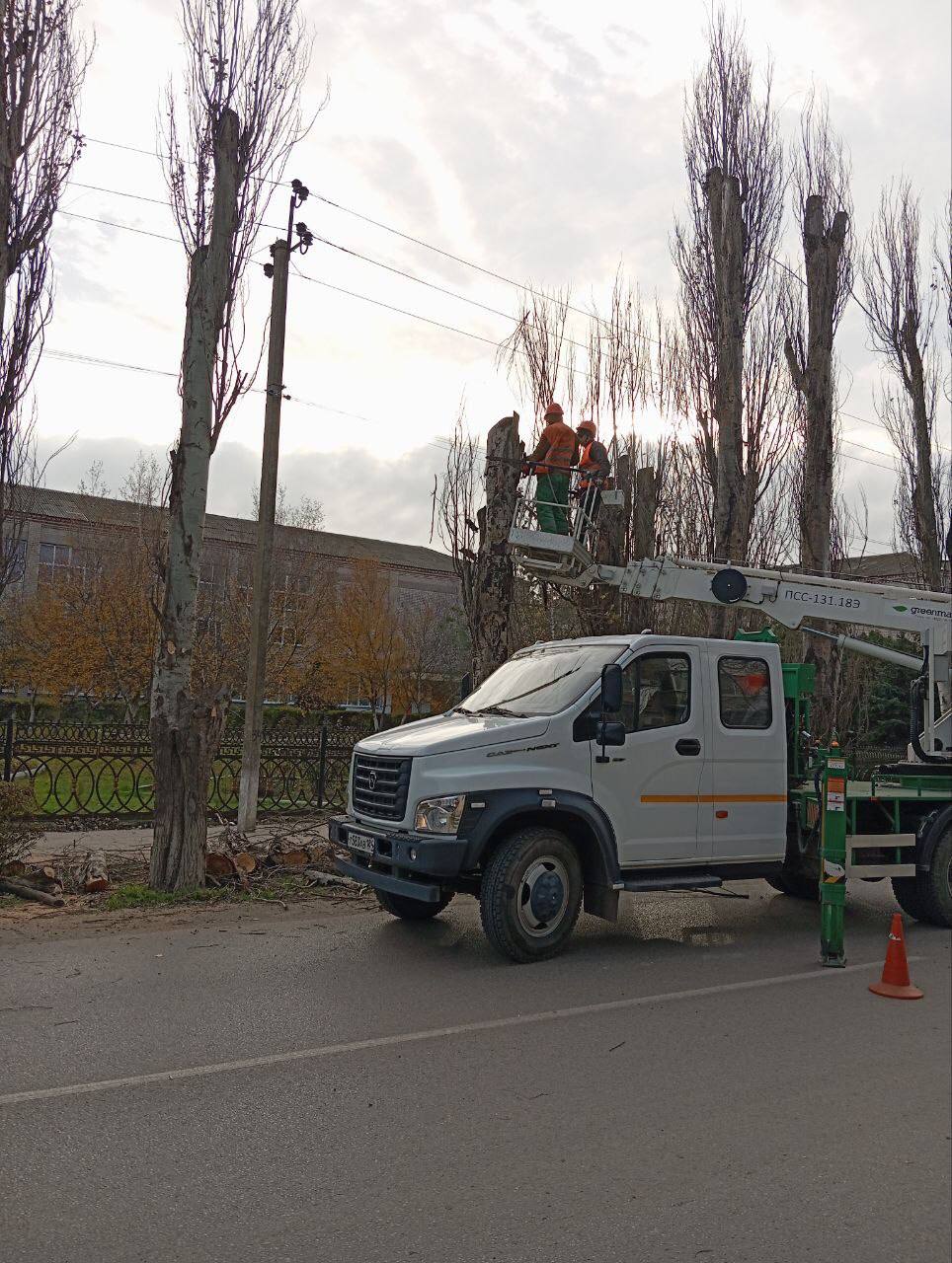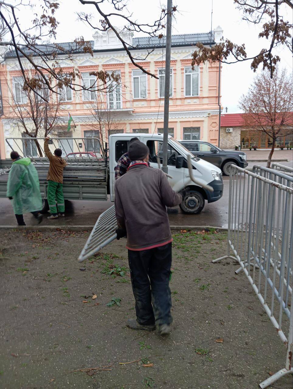 Геническ – демонтаж нелицензированных спутниковых антенн, спил аварийных деревьев на ул. Парижской Коммуны, замена бетонных урн в парке, перевозка ограждений;