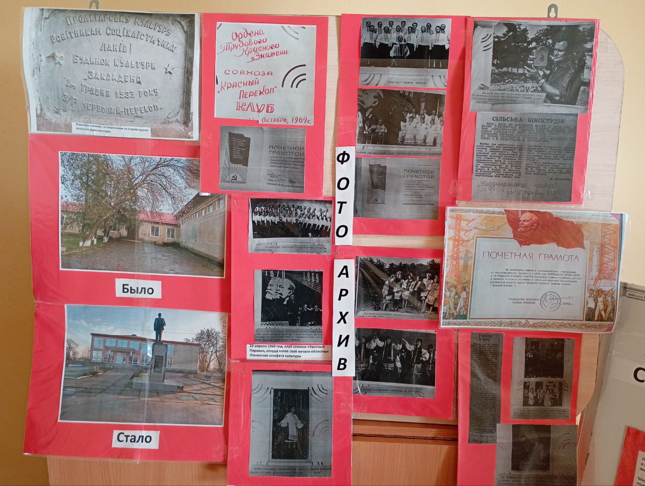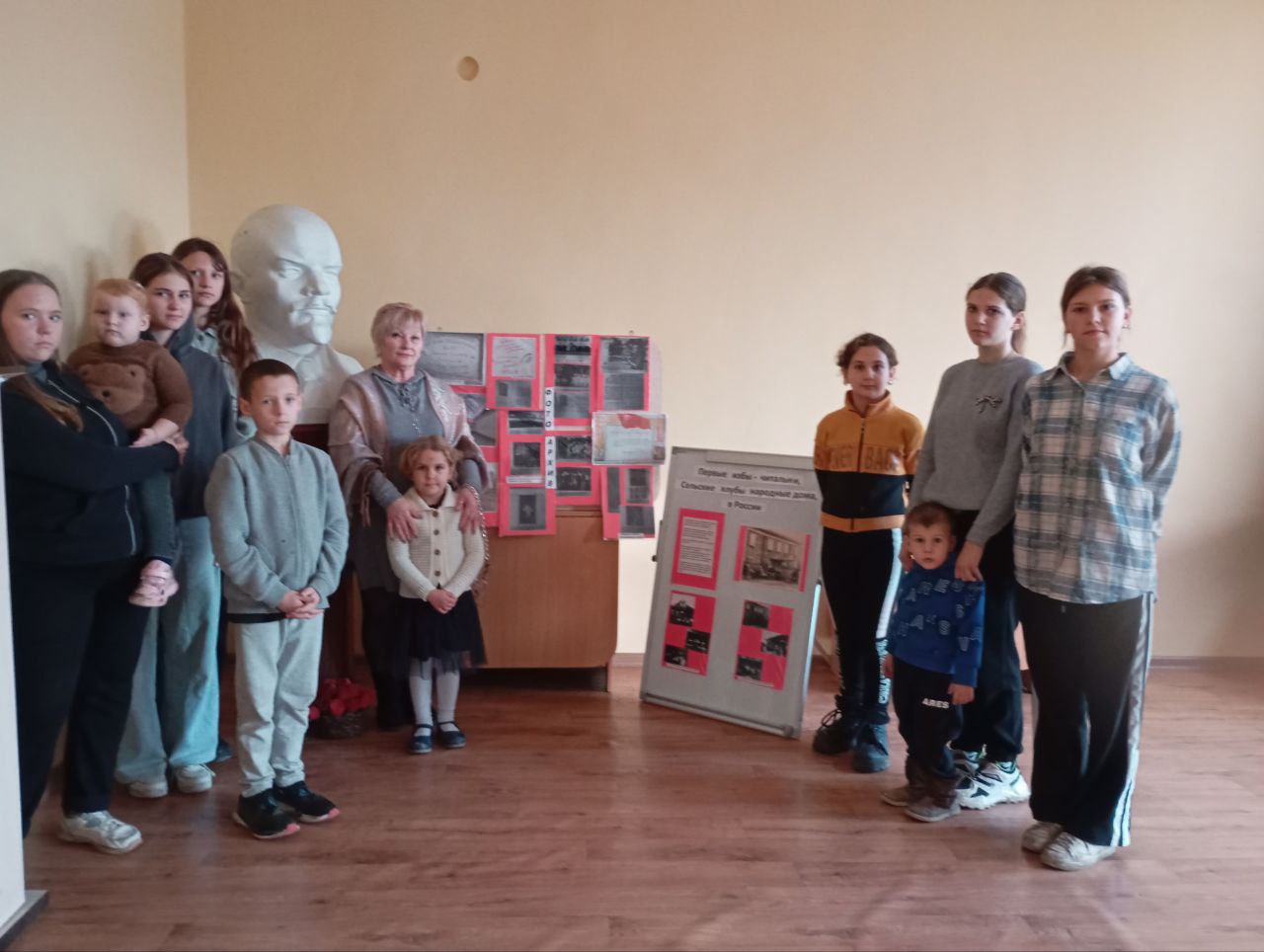 Особое внимание было уделено местному Дому культуры, где до сих пор сохранилась памятная табличка с датой его основания — 1 мая 1933 года. Ребята с интересом рассматривали стенд с архивными фотографиями, на которых были запечатлены участники художественной самодеятельности, баянисты, танцевальные коллективы, а также мужская вокальная капелла и солисты сельского хора. Эти снимки представляют лишь небольшую часть того, что вскоре будет выставлено в музее при сельском ДК.