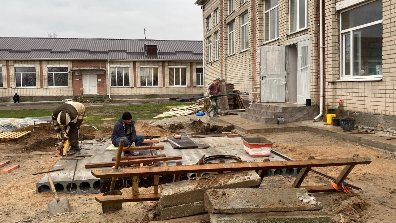 Объём выполненных работ превысил 90%. Сейчас строители занимаются монтажом светильников и оборудования в пищеблоке, делают основание под стяжку пола в спортзале, а также устраивают канализацию. Видимый сейчас положительный результат скрывает за собой значительное количество проделанной работы по выравниванию и укреплению стен, полов и потолков.