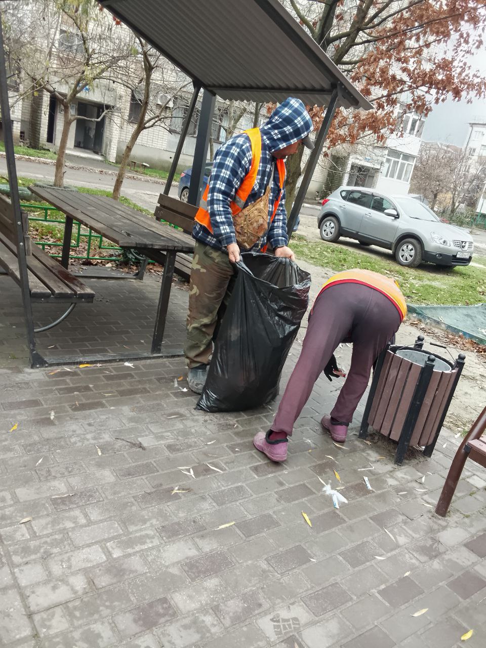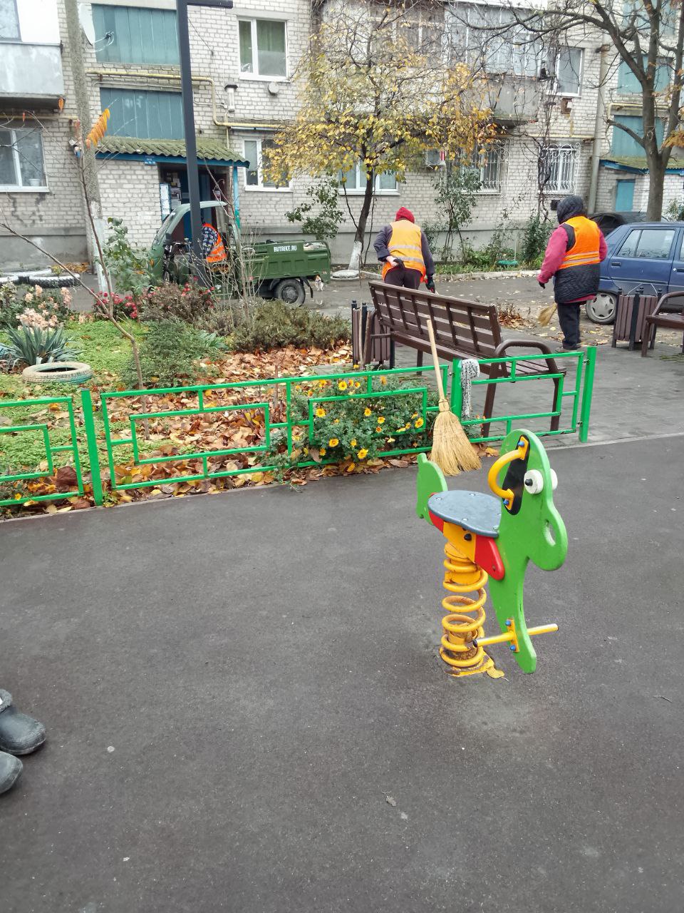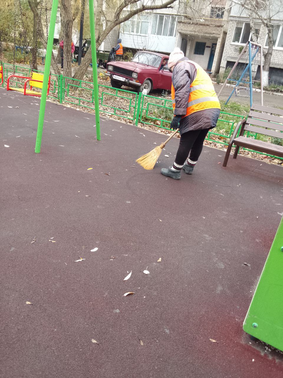 Убрали мусор и подмели детские площадки в микрорайоне.