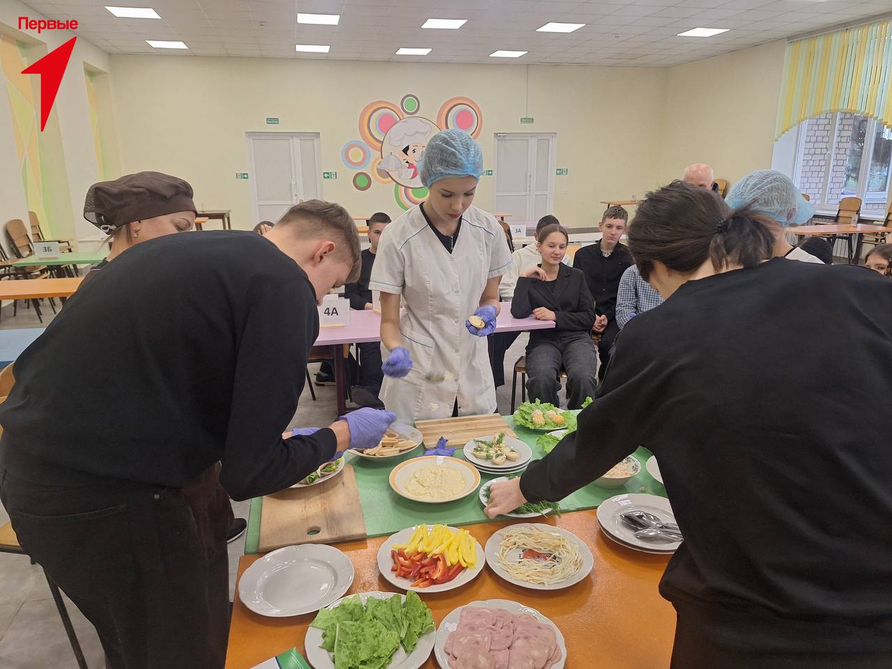 Ребята с энтузиазмом осваивали азы кулинарии под руководством сотрудников школьной столовой. Школьники научились мыть и нарезать продукты, а также оформлять закуски.