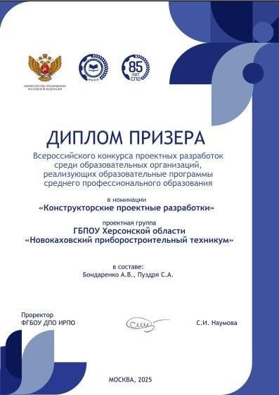 Команда Новокаховского приборостроительного техникума стала призером Всероссийского конкурса проектных разработок среди образовательных организаций, реализующих образовательные программы СПО!