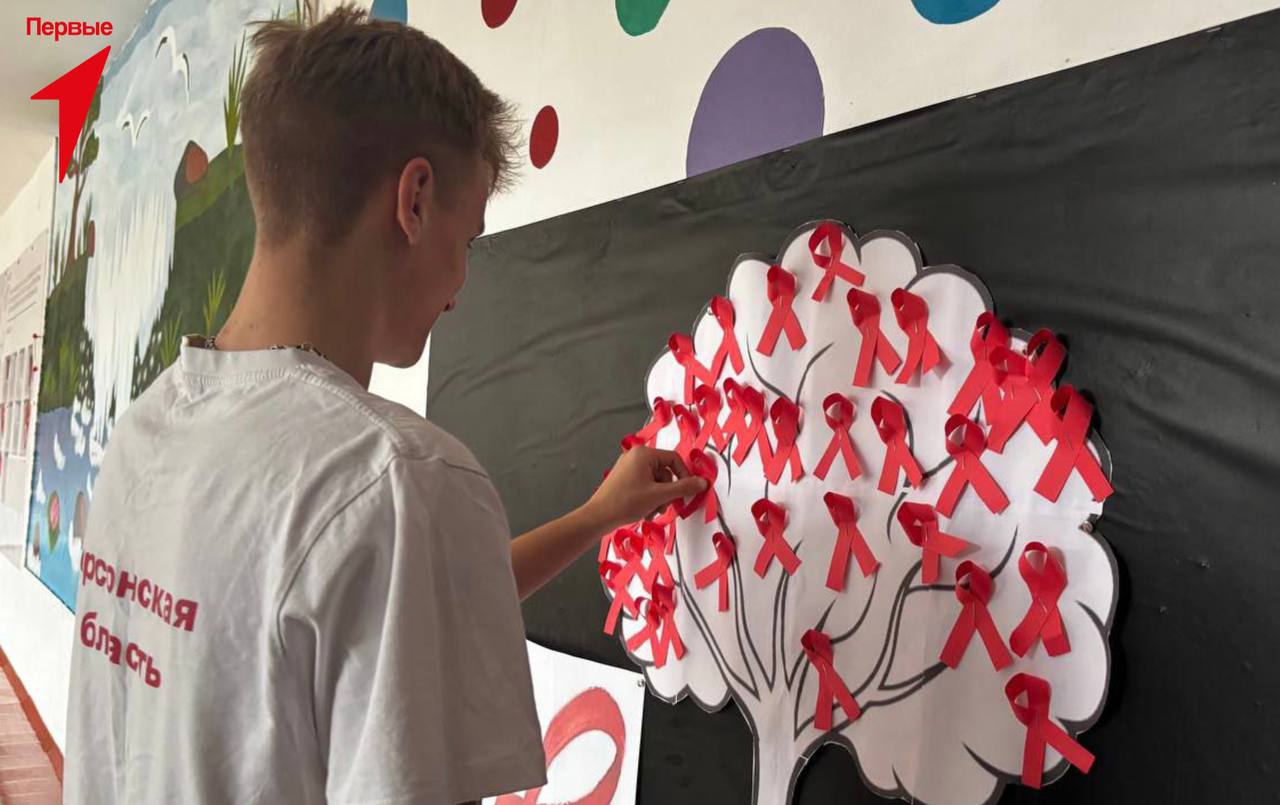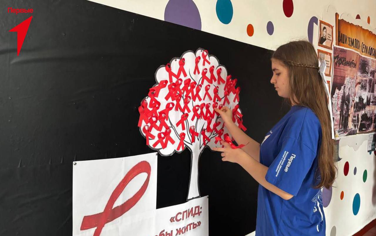 Также ребята создали «Дерево жизни», на которое прикрепили красные ленты — символ борьбы с ВИЧ-инфекцией.