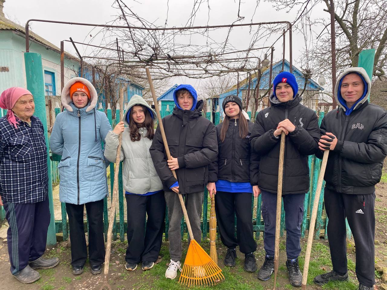 Сегодня ребята из Движения "Первых" вместе с наставником посетили бабушку-пенсионерку. Подмели двор и убрали листья, помогая ей сделать окружающее пространство чище и уютнее.