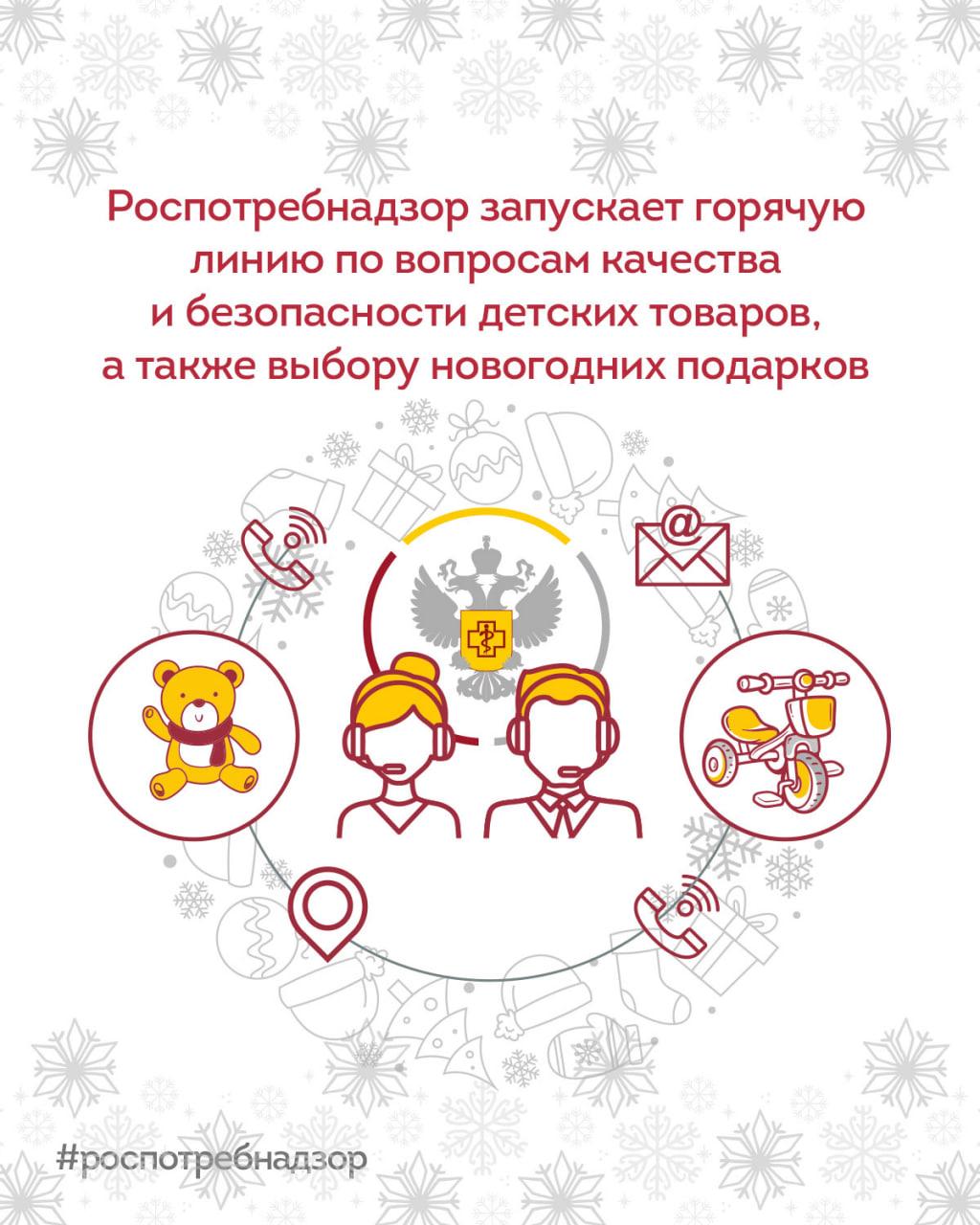 Традиционная предновогодняя горячая линия Роспотребнадзора стартует во всех регионах России. Специалисты ответят на вопросы, касающиеся качества и безопасности детской одежды, обуви, игрушек, новогодних товаров, детского питания, а также действующих нормативных гигиенических требований к этим категориям товаров.