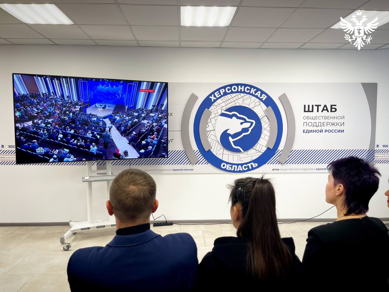 Коллективный просмотр главного ТВ-эфира года организовали и в штабе «Единой России» на Херсонщине.